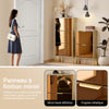 - [Miroir Intégré pour un Espace Visuellement Agrandi] La façade en verre miroir ajoute non seulement une touche luxueuse à votre meuble d’entrée, mais crée aussi un effet de profondeur visuelle pour agrandir l’espace. Idéal comme meuble chaussure bois doré dans un studio moderne
