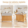 - [RANGEMENT MAXIMAL MODULABLE] Cette desserte de cuisine est équipée de 2 tiroirs coulissants, de placards à double porte, et d’étagères réglables, offrant un grand espace de rangement cuisine pour vos ustensiles, provisions ou produits de nettoyage : une solution parfaite pour une cuisine bien organisée