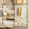 - [SYSTÈME DE PORTANT A VETEMENT TÉLESCOPIQUE POLYVALENT] Doté de 4 barres réglables, de 5 tringles vêtements et de 2 paniers, il vous permet de créer une penderie ouverte personnalisable. Idéal comme porte-vêtements robuste pour chambre ou dressing, sans installation permanente